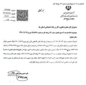 اصلاح بند ۹ دستورالعمل شماره ۲۲ روابط کار در خصوص مأخذ محاسبه فوق العاده نوبت کاری کارگران (بخشنامه شماره ۲۳۷۸۵۳ مورخ ۱۰/۱۱/۱۴۰۲ وزارت تعاون، کار و رفاه اجتماعی)