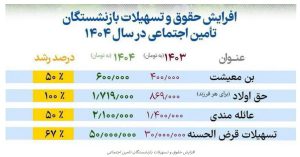 اعلام افزایش حقوق و تسهیلات بازنشستگان تامین اجتماعی سال ۱۴۰۴
