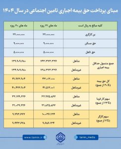حق بیمه ۱۴۰۴ تأمین اجتماعی
